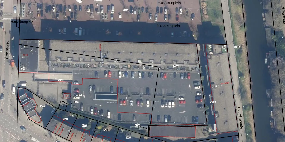 Het perceel waarop Haroekoeplein 124 staat heeft een oppervlakte van 4015 m². Dit is een zeer groot perceel. De perceeloppervlakte wordt geregistreerd door het Kadaster. Gedetailleerde informatie over de maten van dit perceel kunt u vinden in het rapport Kadastrale kaart met maatvoering van Haroekoeplein 124.
