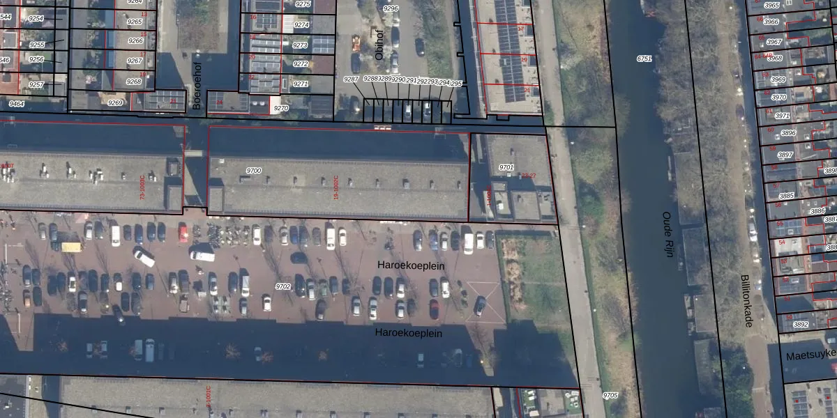 Haroekoeplein 19 is gelegen op kadastraal perceel CTR00C9700. Deze kadastrale aanduiding is uniek en wordt gebruikt door het Kadaster om eigendomsrechten en andere zakelijke rechten vast te leggen. Het perceel maakt onderdeel uit van de kadastrale gemeente Catharijne.