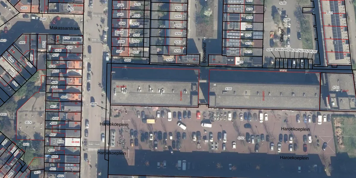 Haroekoeplein 81 is gelegen op kadastraal perceel CTR00C9700. Deze kadastrale aanduiding is uniek en wordt gebruikt door het Kadaster om eigendomsrechten en andere zakelijke rechten vast te leggen. Het perceel maakt onderdeel uit van de kadastrale gemeente Catharijne.