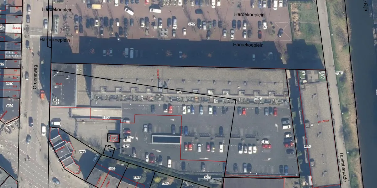 Het perceel waarop Haroekoeplein 84 staat heeft een oppervlakte van 4015 m². Dit is een zeer groot perceel. De perceeloppervlakte wordt geregistreerd door het Kadaster. Gedetailleerde informatie over de maten van dit perceel kunt u vinden in het rapport Kadastrale kaart met maatvoering van Haroekoeplein 84.