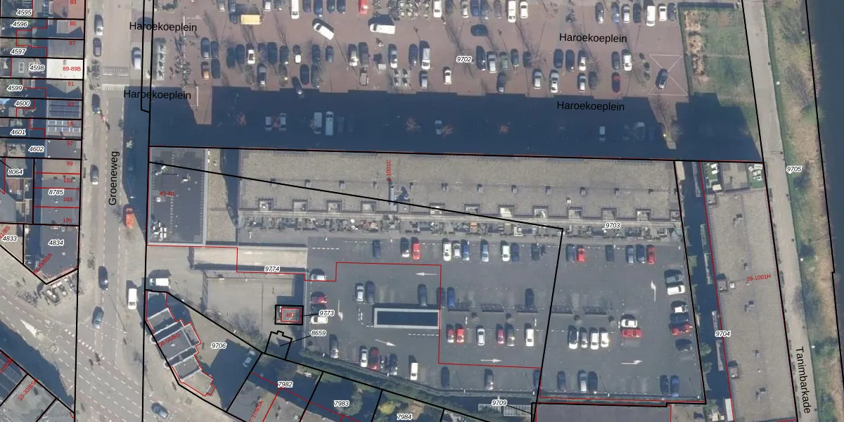 Het perceel waarop Haroekoeplein 88 staat heeft een oppervlakte van 4015 m². Dit is een zeer groot perceel. De perceeloppervlakte wordt geregistreerd door het Kadaster. Gedetailleerde informatie over de maten van dit perceel kunt u vinden in het rapport Kadastrale kaart met maatvoering van Haroekoeplein 88.