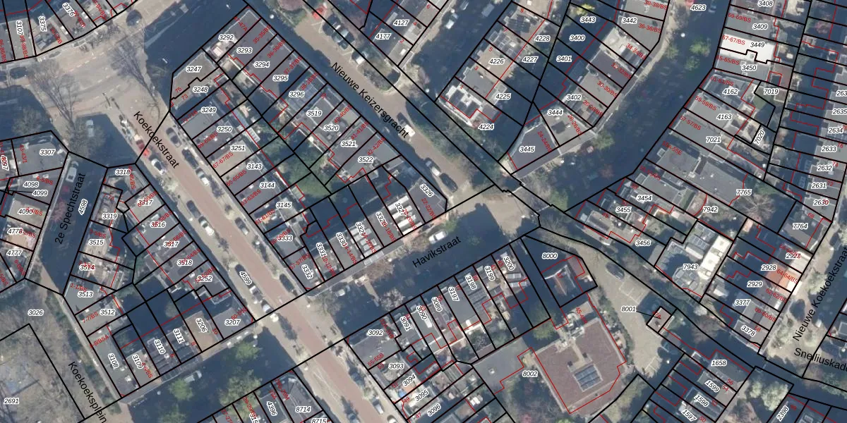 Het perceel waarop Havikstraat 22 staat heeft een oppervlakte van 99 m². Dit is een klein perceel. De perceeloppervlakte wordt geregistreerd door het Kadaster. Gedetailleerde informatie over de maten van dit perceel kunt u vinden in het rapport Kadastrale kaart met maatvoering van Havikstraat 22.