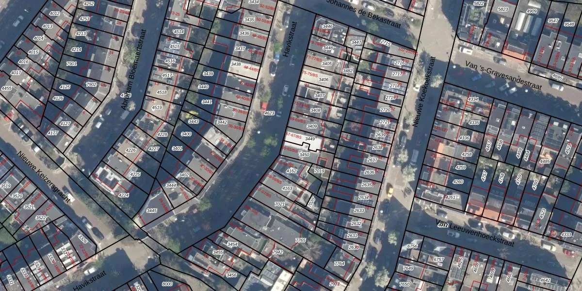Het perceel waarop Havikstraat 65 staat heeft een oppervlakte van 92 m². Dit is een klein perceel. De perceeloppervlakte wordt geregistreerd door het Kadaster. Gedetailleerde informatie over de maten van dit perceel kunt u vinden in het rapport Kadastrale kaart met maatvoering van Havikstraat 65.
