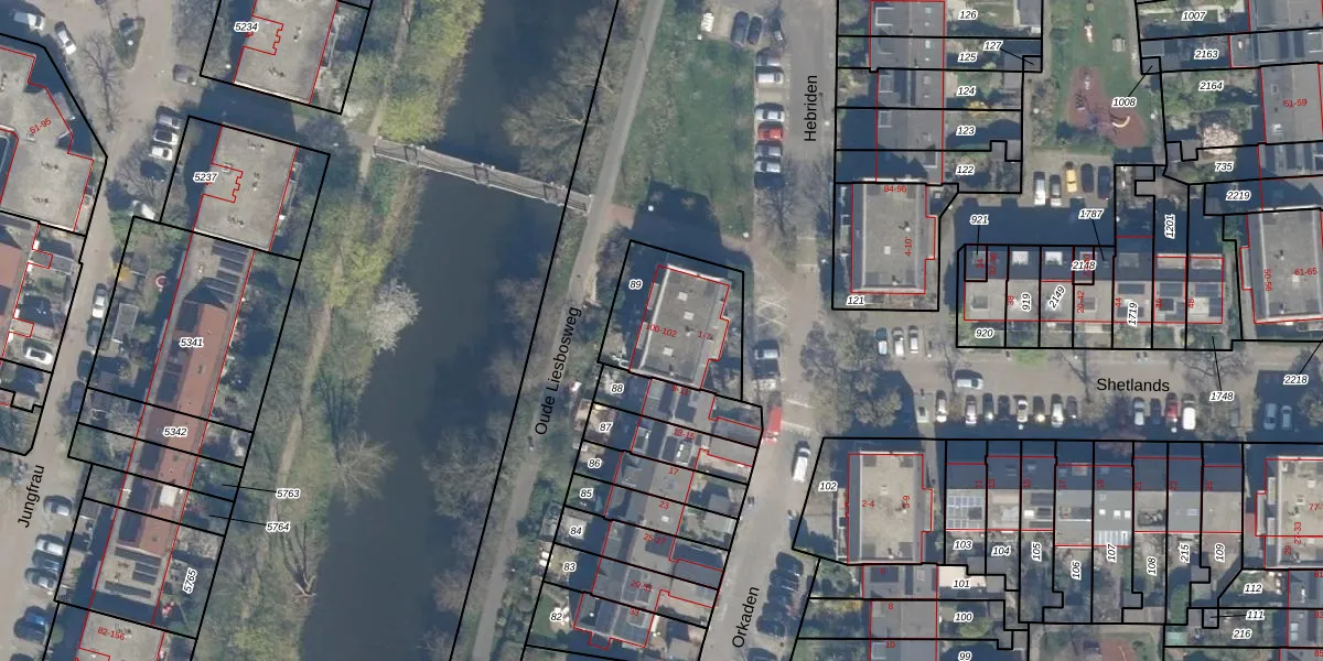 Het perceel waarop Hebriden 102 staat heeft een oppervlakte van 385 m². Dit is een groot perceel. De perceeloppervlakte wordt geregistreerd door het Kadaster. Gedetailleerde informatie over de maten van dit perceel kunt u vinden in het rapport Kadastrale kaart met maatvoering van Hebriden 102.