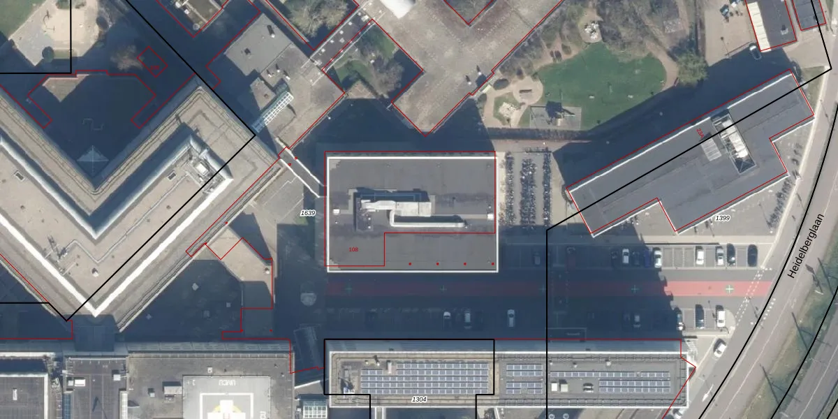 Het perceel waarop Heidelberglaan 108 staat heeft een oppervlakte van 4,3 ha. Dit is een zeer groot perceel. De perceeloppervlakte wordt geregistreerd door het Kadaster. Gedetailleerde informatie over de maten van dit perceel kunt u vinden in het rapport Kadastrale kaart met maatvoering van Heidelberglaan 108.