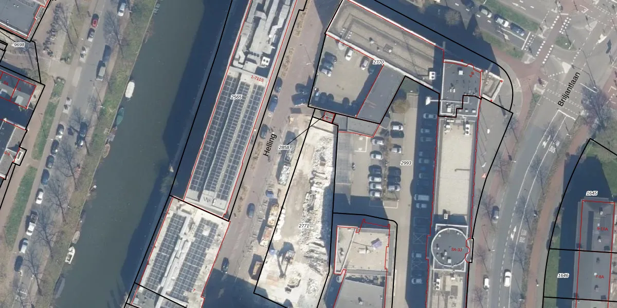Het perceel waarop Helling 8-A staat heeft een oppervlakte van 1018 m². Dit is een zeer groot perceel. De perceeloppervlakte wordt geregistreerd door het Kadaster. Gedetailleerde informatie over de maten van dit perceel kunt u vinden in het rapport Kadastrale kaart met maatvoering van Helling 8-A.