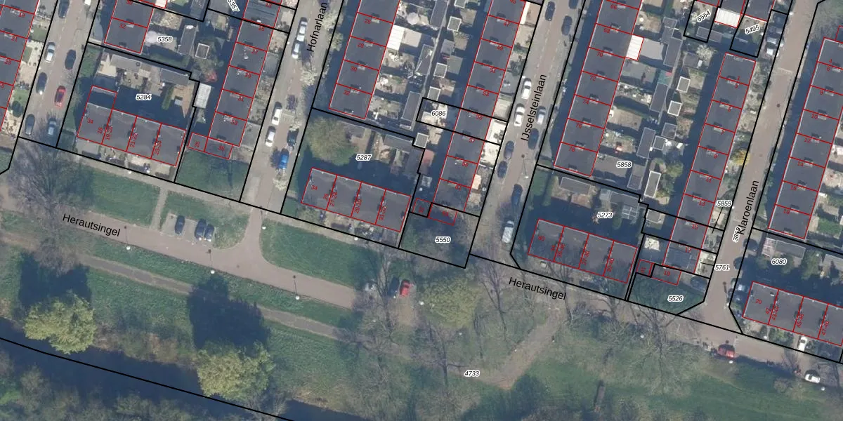 Het perceel waarop Herautsingel 33 staat heeft een oppervlakte van 3732 m². Dit is een zeer groot perceel. De perceeloppervlakte wordt geregistreerd door het Kadaster. Gedetailleerde informatie over de maten van dit perceel kunt u vinden in het rapport Kadastrale kaart met maatvoering van Herautsingel 33.