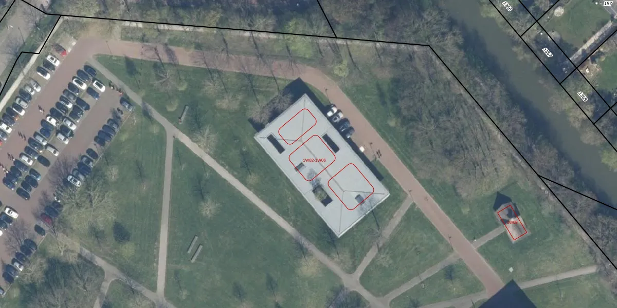 Het perceel waarop Herculeslaan 1-W-05 staat heeft een oppervlakte van 18,8 ha. Dit is een zeer groot perceel. De perceeloppervlakte wordt geregistreerd door het Kadaster. Gedetailleerde informatie over de maten van dit perceel kunt u vinden in het rapport Kadastrale kaart met maatvoering van Herculeslaan 1-W-05.