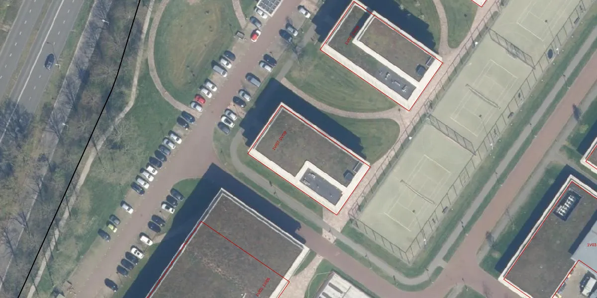 Het perceel waarop Herculeslaan 1-V-07 staat heeft een oppervlakte van 18,8 ha. Dit is een zeer groot perceel. De perceeloppervlakte wordt geregistreerd door het Kadaster. Gedetailleerde informatie over de maten van dit perceel kunt u vinden in het rapport Kadastrale kaart met maatvoering van Herculeslaan 1-V-07.