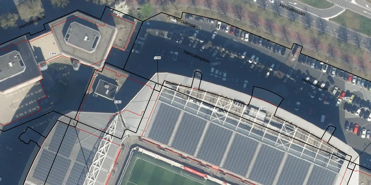 Het perceel waarop Herculesplein 227 staat heeft een oppervlakte van 865 m². Dit is een groot perceel. De perceeloppervlakte wordt geregistreerd door het Kadaster. Gedetailleerde informatie over de maten van dit perceel kunt u vinden in het rapport Kadastrale kaart met maatvoering van Herculesplein 227.