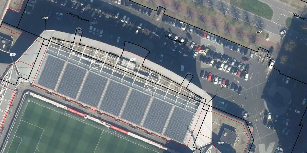 Het perceel waarop Herculesplein 243 staat heeft een oppervlakte van 865 m². Dit is een groot perceel. De perceeloppervlakte wordt geregistreerd door het Kadaster. Gedetailleerde informatie over de maten van dit perceel kunt u vinden in het rapport Kadastrale kaart met maatvoering van Herculesplein 243.