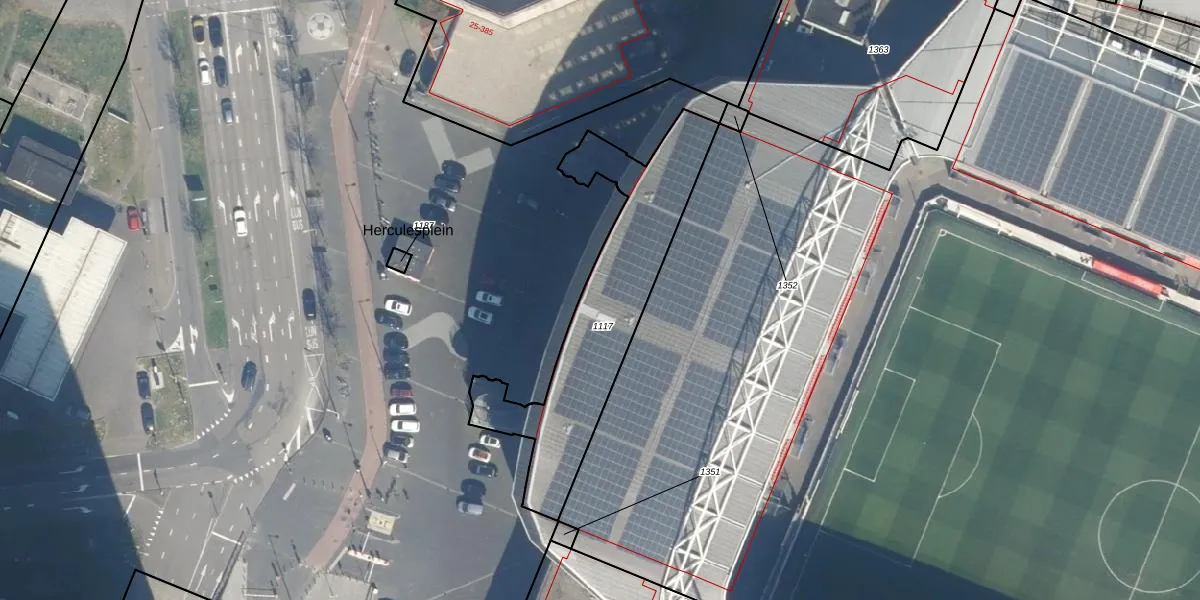 Het perceel waarop Herculesplein 373 staat heeft een oppervlakte van 813 m². Dit is een groot perceel. De perceeloppervlakte wordt geregistreerd door het Kadaster. Gedetailleerde informatie over de maten van dit perceel kunt u vinden in het rapport Kadastrale kaart met maatvoering van Herculesplein 373.