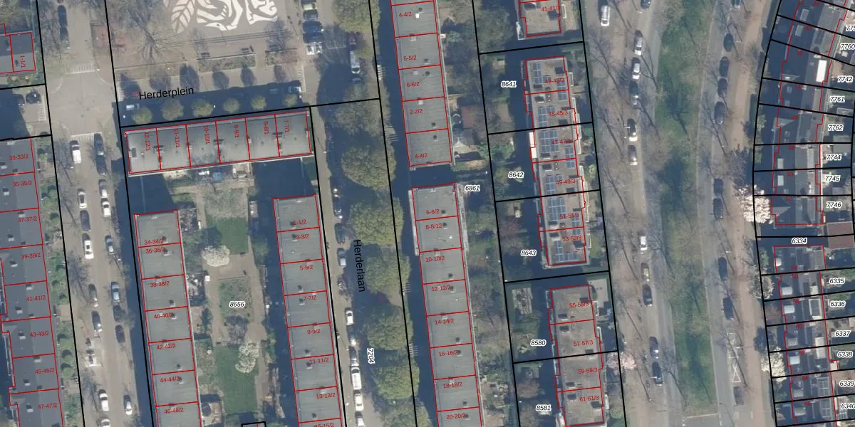 Herderlaan 6 is gelegen op kadastraal perceel CTR00C6861. Deze kadastrale aanduiding is uniek en wordt gebruikt door het Kadaster om eigendomsrechten en andere zakelijke rechten vast te leggen. Het perceel maakt onderdeel uit van de kadastrale gemeente Catharijne.