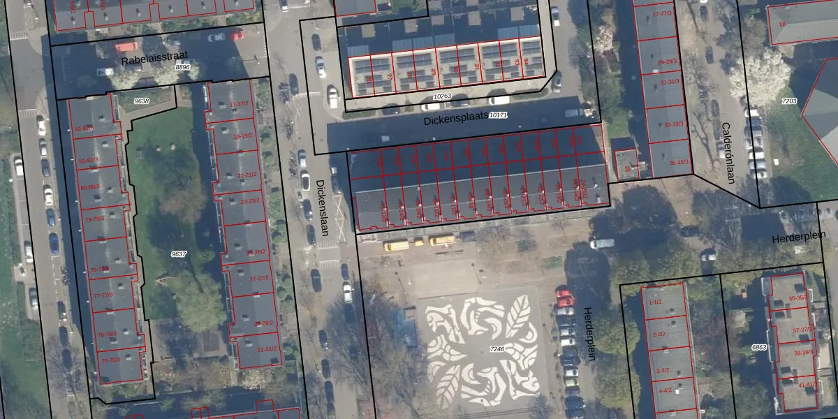 Het perceel waarop Herderplein 15 staat heeft een oppervlakte van 2910 m². Dit is een zeer groot perceel. De perceeloppervlakte wordt geregistreerd door het Kadaster. Gedetailleerde informatie over de maten van dit perceel kunt u vinden in het rapport Kadastrale kaart met maatvoering van Herderplein 15.