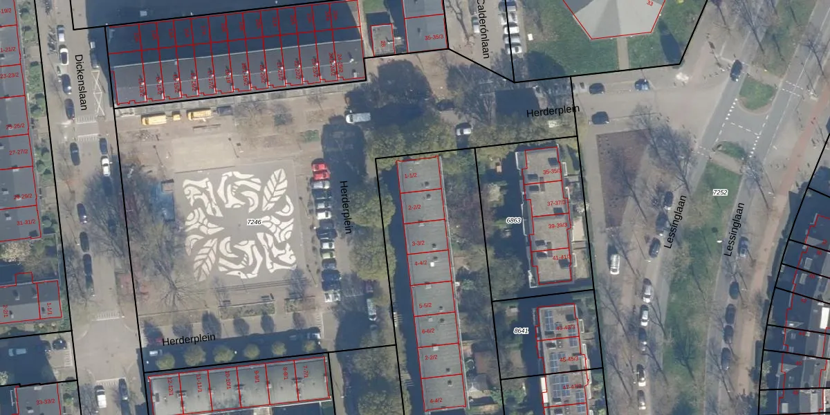 Het perceel waarop Herderplein 2-2 staat heeft een oppervlakte van 3119 m². Dit is een zeer groot perceel. De perceeloppervlakte wordt geregistreerd door het Kadaster. Gedetailleerde informatie over de maten van dit perceel kunt u vinden in het rapport Kadastrale kaart met maatvoering van Herderplein 2-2.