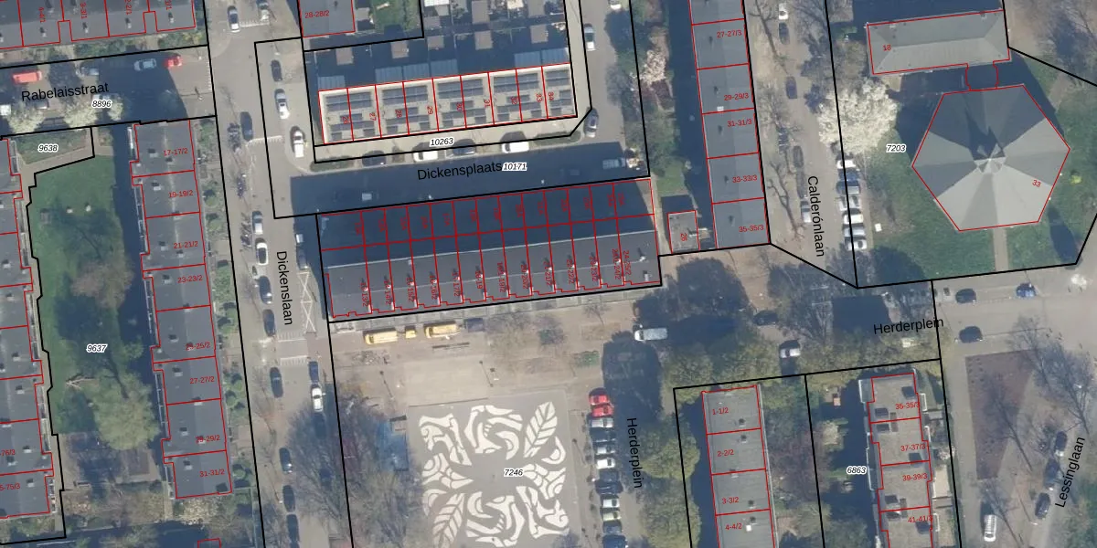 Het perceel waarop Herderplein 21 staat heeft een oppervlakte van 2910 m². Dit is een zeer groot perceel. De perceeloppervlakte wordt geregistreerd door het Kadaster. Gedetailleerde informatie over de maten van dit perceel kunt u vinden in het rapport Kadastrale kaart met maatvoering van Herderplein 21.