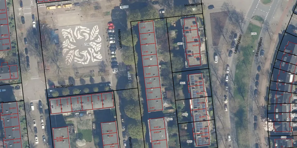 Het perceel waarop Herderplein 5-1 staat heeft een oppervlakte van 3119 m². Dit is een zeer groot perceel. De perceeloppervlakte wordt geregistreerd door het Kadaster. Gedetailleerde informatie over de maten van dit perceel kunt u vinden in het rapport Kadastrale kaart met maatvoering van Herderplein 5-1.