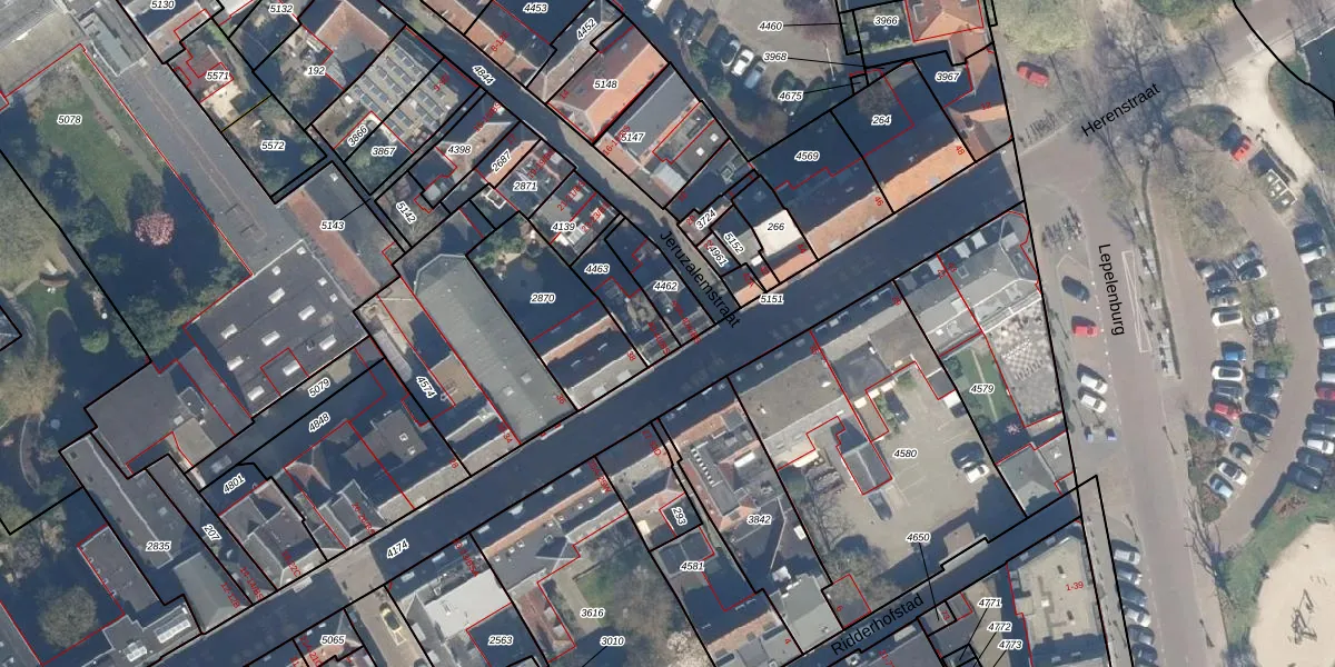 Herenstraat 40 is gelegen op kadastraal perceel UTT00B4463. Deze kadastrale aanduiding is uniek en wordt gebruikt door het Kadaster om eigendomsrechten en andere zakelijke rechten vast te leggen. Het perceel maakt onderdeel uit van de kadastrale gemeente Utrecht.