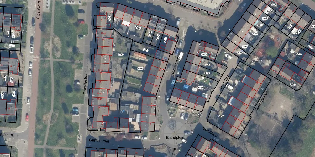 Het perceel waarop Hertestraat 17 staat heeft een oppervlakte van 1138 m². Dit is een zeer groot perceel. De perceeloppervlakte wordt geregistreerd door het Kadaster. Gedetailleerde informatie over de maten van dit perceel kunt u vinden in het rapport Kadastrale kaart met maatvoering van Hertestraat 17.