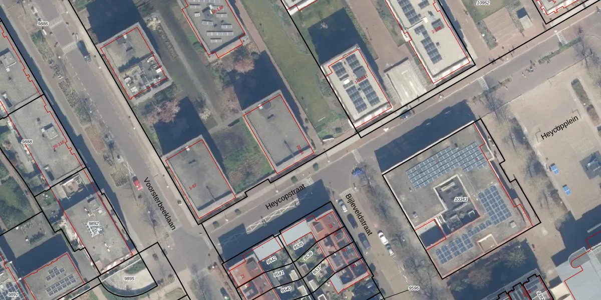 Het perceel waarop Heycopstraat 20 staat heeft een oppervlakte van 6763 m². Dit is een zeer groot perceel. De perceeloppervlakte wordt geregistreerd door het Kadaster. Gedetailleerde informatie over de maten van dit perceel kunt u vinden in het rapport Kadastrale kaart met maatvoering van Heycopstraat 20.