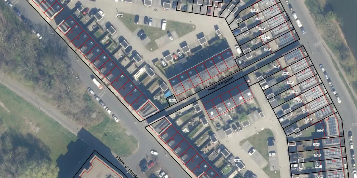 Hildo Kroppad 13 is gelegen op kadastraal perceel CTR00F2586. Deze kadastrale aanduiding is uniek en wordt gebruikt door het Kadaster om eigendomsrechten en andere zakelijke rechten vast te leggen. Het perceel maakt onderdeel uit van de kadastrale gemeente Catharijne.