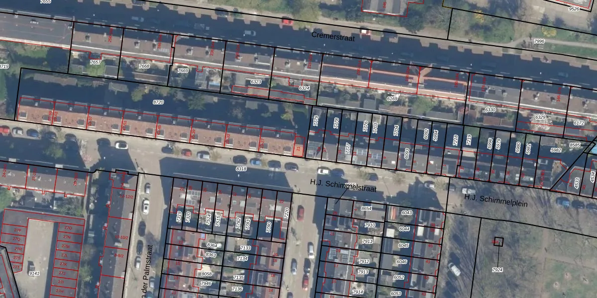 H.J. Schimmelstraat 21 is gelegen op kadastraal perceel CTR00B8720. Deze kadastrale aanduiding is uniek en wordt gebruikt door het Kadaster om eigendomsrechten en andere zakelijke rechten vast te leggen. Het perceel maakt onderdeel uit van de kadastrale gemeente Catharijne.