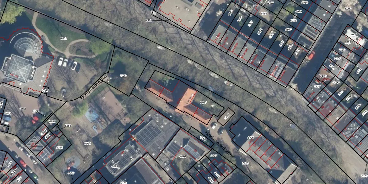 Het perceel waarop Hoefsmederijstraat 33 staat heeft een oppervlakte van 530 m². Dit is een groot perceel. De perceeloppervlakte wordt geregistreerd door het Kadaster. Gedetailleerde informatie over de maten van dit perceel kunt u vinden in het rapport Kadastrale kaart met maatvoering van Hoefsmederijstraat 33.
