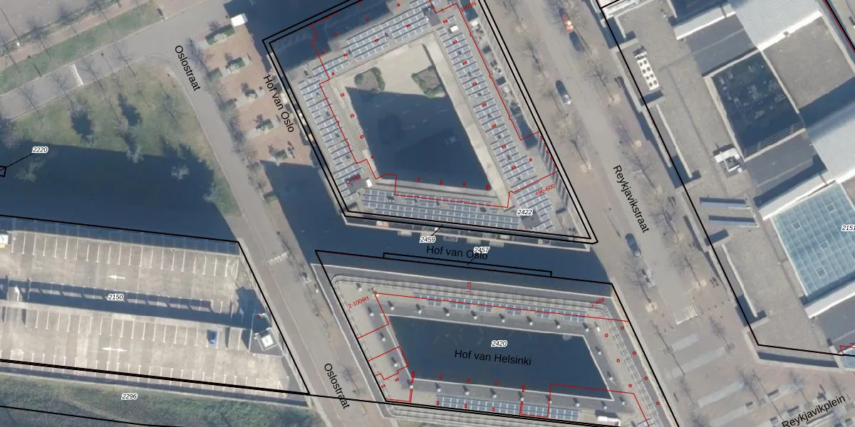 Hof van Oslo 10 is gelegen op kadastraal perceel CTR00A2422. Deze kadastrale aanduiding is uniek en wordt gebruikt door het Kadaster om eigendomsrechten en andere zakelijke rechten vast te leggen. Het perceel maakt onderdeel uit van de kadastrale gemeente Catharijne.