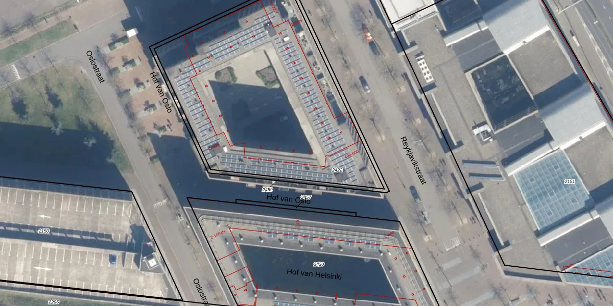 Het perceel waarop Hof van Oslo 122 staat heeft een oppervlakte van 2840 m². Dit is een zeer groot perceel. De perceeloppervlakte wordt geregistreerd door het Kadaster. Gedetailleerde informatie over de maten van dit perceel kunt u vinden in het rapport Kadastrale kaart met maatvoering van Hof van Oslo 122.