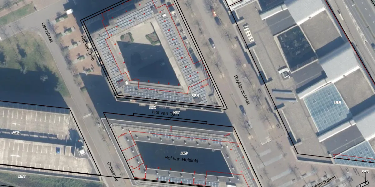 Het perceel waarop Hof van Oslo 26 staat heeft een oppervlakte van 2840 m². Dit is een zeer groot perceel. De perceeloppervlakte wordt geregistreerd door het Kadaster. Gedetailleerde informatie over de maten van dit perceel kunt u vinden in het rapport Kadastrale kaart met maatvoering van Hof van Oslo 26.
