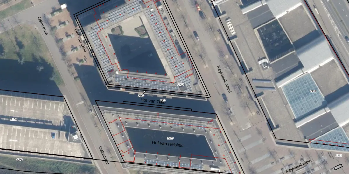 Het perceel waarop Hof van Oslo 34 staat heeft een oppervlakte van 2840 m². Dit is een zeer groot perceel. De perceeloppervlakte wordt geregistreerd door het Kadaster. Gedetailleerde informatie over de maten van dit perceel kunt u vinden in het rapport Kadastrale kaart met maatvoering van Hof van Oslo 34.