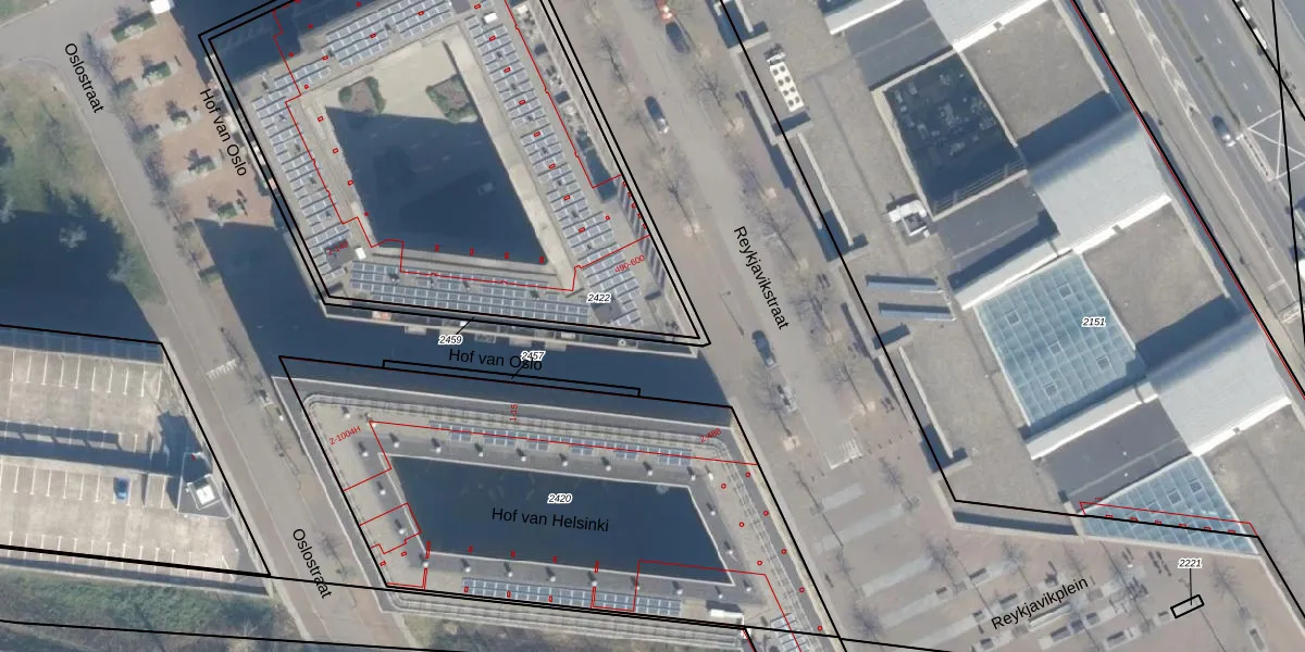 Het perceel waarop Hof van Oslo 70 staat heeft een oppervlakte van 2840 m². Dit is een zeer groot perceel. De perceeloppervlakte wordt geregistreerd door het Kadaster. Gedetailleerde informatie over de maten van dit perceel kunt u vinden in het rapport Kadastrale kaart met maatvoering van Hof van Oslo 70.