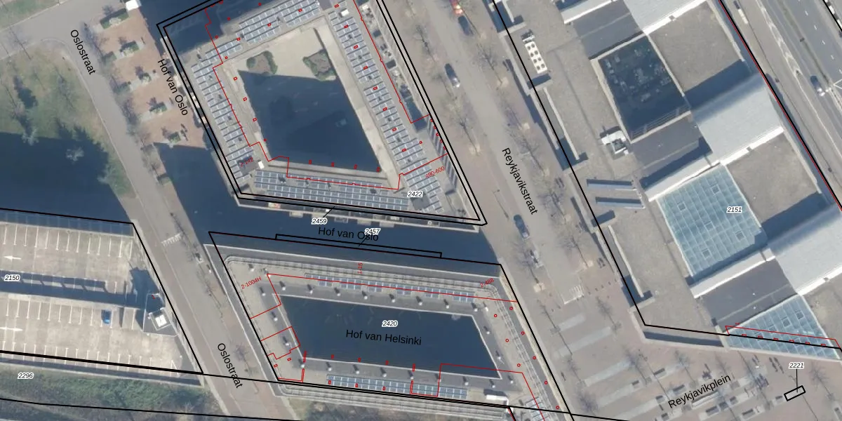 Het perceel waarop Hof van Oslo 80 staat heeft een oppervlakte van 2840 m². Dit is een zeer groot perceel. De perceeloppervlakte wordt geregistreerd door het Kadaster. Gedetailleerde informatie over de maten van dit perceel kunt u vinden in het rapport Kadastrale kaart met maatvoering van Hof van Oslo 80.