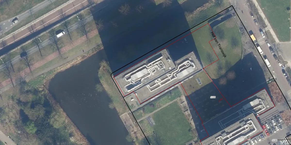 Het perceel waarop Hof van Transwijk 151 staat heeft een oppervlakte van 9865 m². Dit is een zeer groot perceel. De perceeloppervlakte wordt geregistreerd door het Kadaster. Gedetailleerde informatie over de maten van dit perceel kunt u vinden in het rapport Kadastrale kaart met maatvoering van Hof van Transwijk 151.