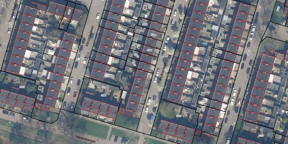Hofnarlaan 25 is gelegen op kadastraal perceel UTT00P5358. Deze kadastrale aanduiding is uniek en wordt gebruikt door het Kadaster om eigendomsrechten en andere zakelijke rechten vast te leggen. Het perceel maakt onderdeel uit van de kadastrale gemeente Utrecht.