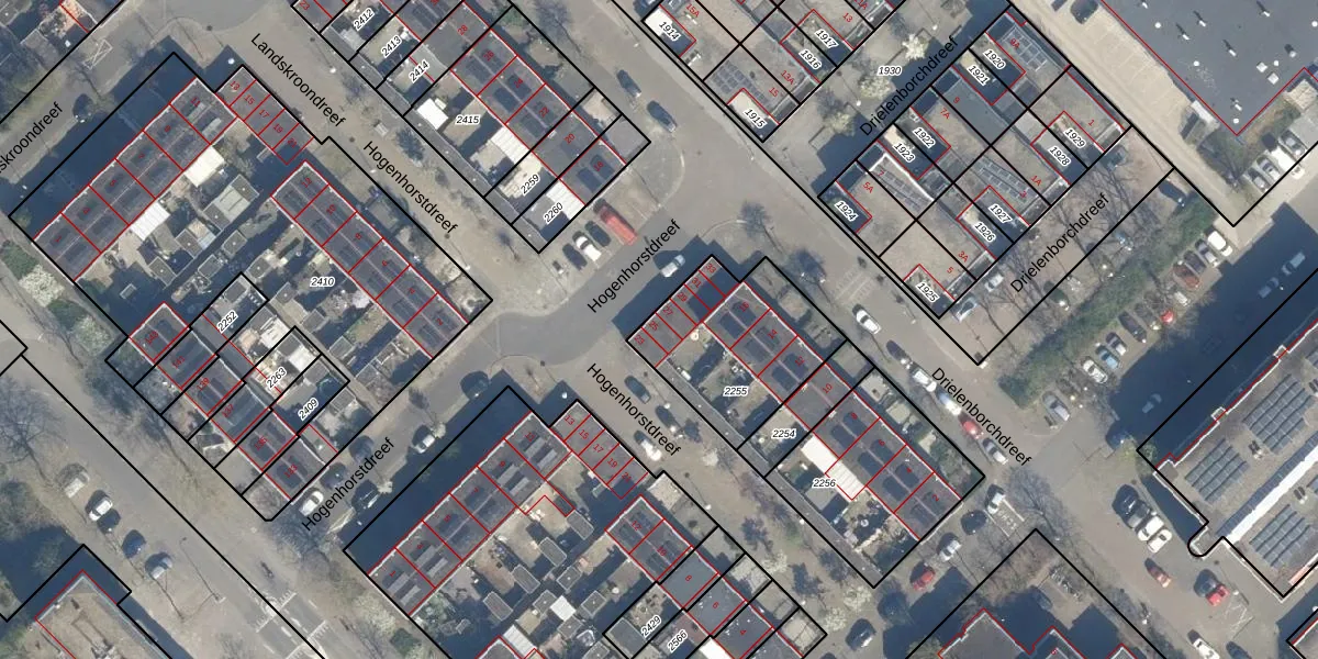 Het perceel waarop Hogenhorstdreef 25 staat heeft een oppervlakte van 530 m². Dit is een groot perceel. De perceeloppervlakte wordt geregistreerd door het Kadaster. Gedetailleerde informatie over de maten van dit perceel kunt u vinden in het rapport Kadastrale kaart met maatvoering van Hogenhorstdreef 25.