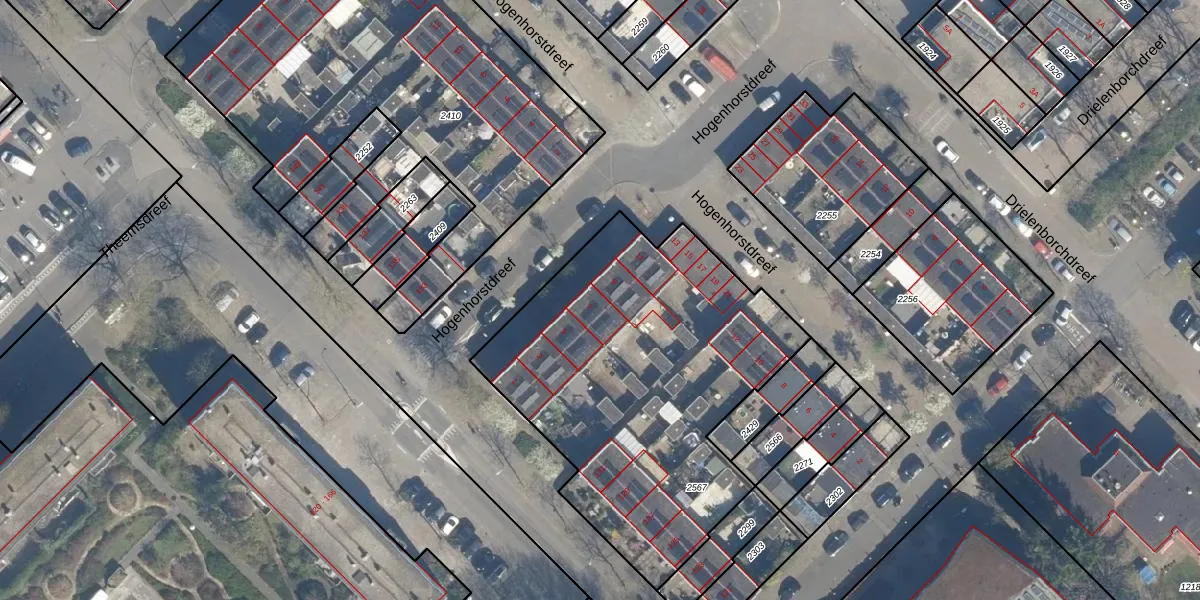 Het perceel waarop Hogenhorstdreef 7 staat heeft een oppervlakte van 1840 m². Dit is een zeer groot perceel. De perceeloppervlakte wordt geregistreerd door het Kadaster. Gedetailleerde informatie over de maten van dit perceel kunt u vinden in het rapport Kadastrale kaart met maatvoering van Hogenhorstdreef 7.