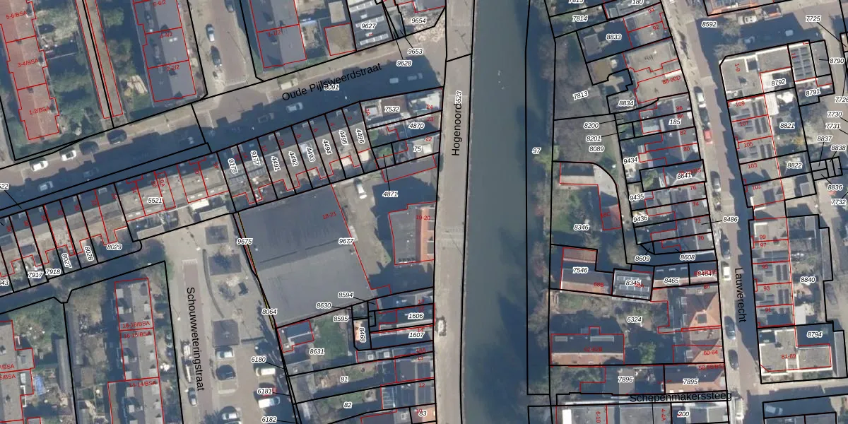 Het perceel waarop Hogenoord 20 staat heeft een oppervlakte van 1296 m². Dit is een zeer groot perceel. De perceeloppervlakte wordt geregistreerd door het Kadaster. Gedetailleerde informatie over de maten van dit perceel kunt u vinden in het rapport Kadastrale kaart met maatvoering van Hogenoord 20.