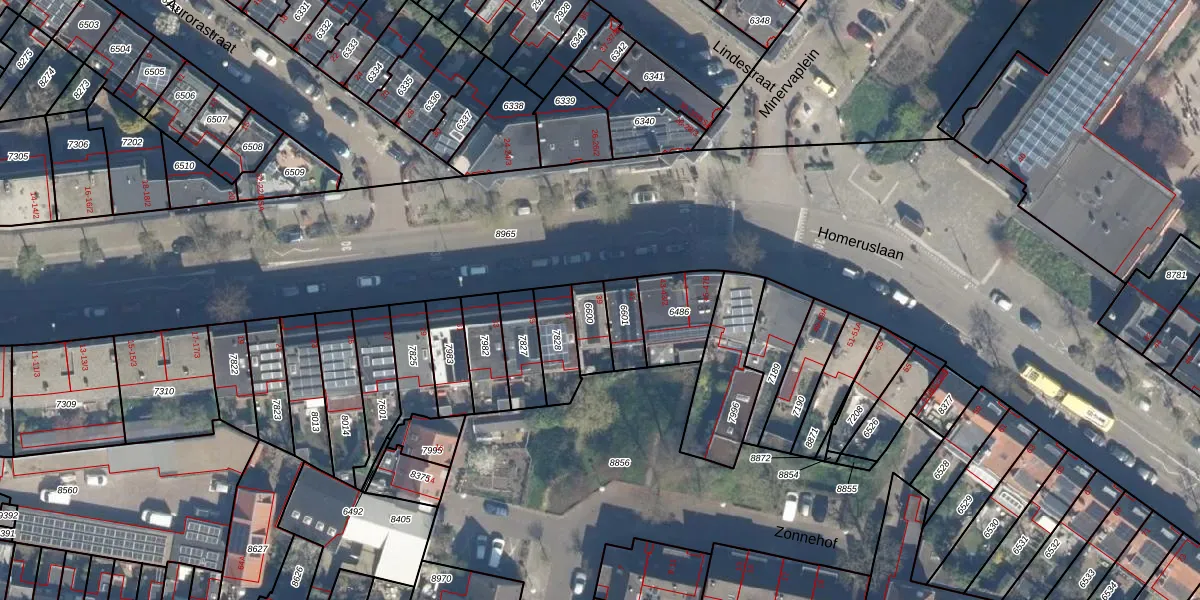Het perceel waarop Homeruslaan 39 staat heeft een oppervlakte van 84 m². Dit is een klein perceel. De perceeloppervlakte wordt geregistreerd door het Kadaster. Gedetailleerde informatie over de maten van dit perceel kunt u vinden in het rapport Kadastrale kaart met maatvoering van Homeruslaan 39.