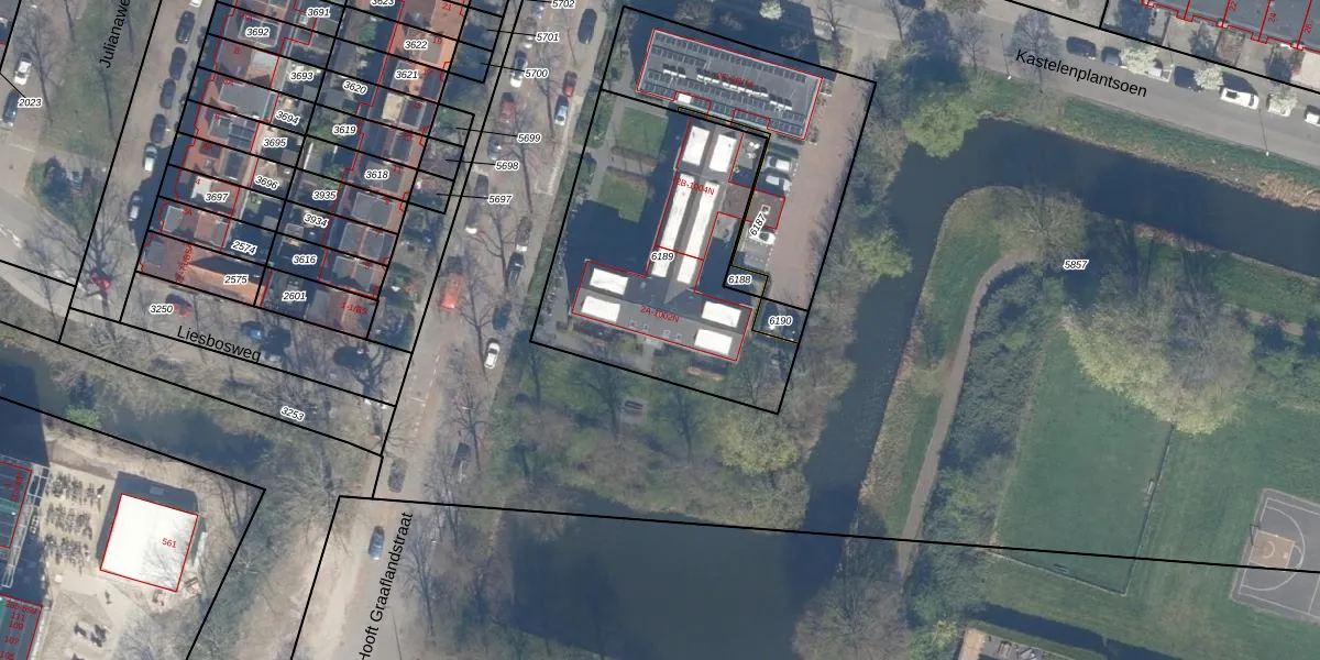 Het adres is gelegen op perceel 6189 in de sectie P en de kadastrale gemeente Utrecht. De kadastrale aanduiding is aldus UTT00-P-6189. De gemiddelde perceelgrootte in Utrecht is 1438,48 m². Dit perceel is kleiner: de perceeloppervlakte bedraagt 1206 m². Het kleinste perceel in de kadastrale gemeente is 0 m² groot. De grootste perceeloppervlakte is 90,1 ha. Op het perceel zijn 33 adressen aanwezig. De huidige grenzen van het perceel zijn digitaal in de Basisregistratie Kadaster (BRK) geregistreerd op 15-09-2023.