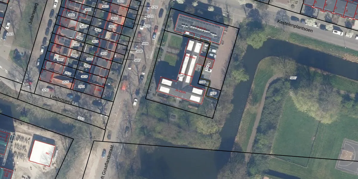 Het adres is gelegen op perceel 6189 in de sectie P en de kadastrale gemeente Utrecht. De kadastrale aanduiding is aldus UTT00-P-6189. De gemiddelde perceelgrootte in Utrecht is 1438,48 m². Dit perceel is kleiner: de perceeloppervlakte bedraagt 1206 m². Het kleinste perceel in de kadastrale gemeente is 0 m² groot. De grootste perceeloppervlakte is 90,1 ha. Op het perceel zijn 33 adressen aanwezig. De huidige grenzen van het perceel zijn digitaal in de Basisregistratie Kadaster (BRK) geregistreerd op 15-09-2023.