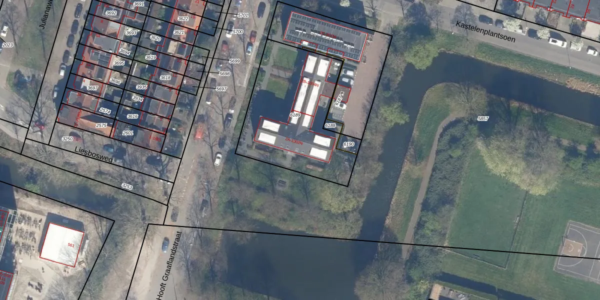 Het adres is gelegen op perceel 6189 in de sectie P en de kadastrale gemeente Utrecht. De kadastrale aanduiding is aldus UTT00-P-6189. De gemiddelde perceelgrootte in Utrecht is 1438,48 m². Dit perceel is kleiner: de perceeloppervlakte bedraagt 1206 m². Het kleinste perceel in de kadastrale gemeente is 0 m² groot. De grootste perceeloppervlakte is 90,1 ha. Op het perceel liggen in totaal 33 adressen. In de Basisregistratie Kadaster (BRK) werden de grenzen van het perceel geregistreerd op 15-09-2023.