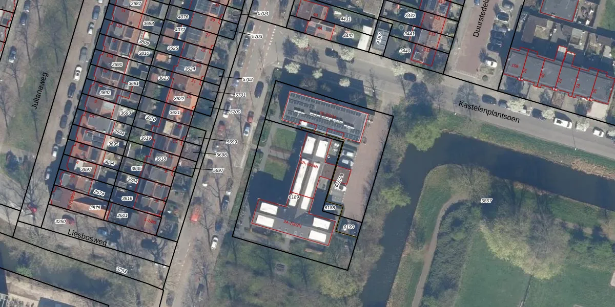 Het adres is gelegen op perceel 6189 in de sectie P en de kadastrale gemeente Utrecht. De kadastrale aanduiding is aldus UTT00-P-6189. De gemiddelde perceelgrootte in Utrecht is 1438,48 m². Dit perceel is kleiner: de perceeloppervlakte bedraagt 1206 m². Het kleinste perceel in de kadastrale gemeente is 0 m² groot. De grootste perceeloppervlakte is 90,1 ha. Er zijn 33 adressen aanwezig op het perceel. De laatste wijziging in het de Basisregistratie Kadaster (BRK) was op 15-09-2023.