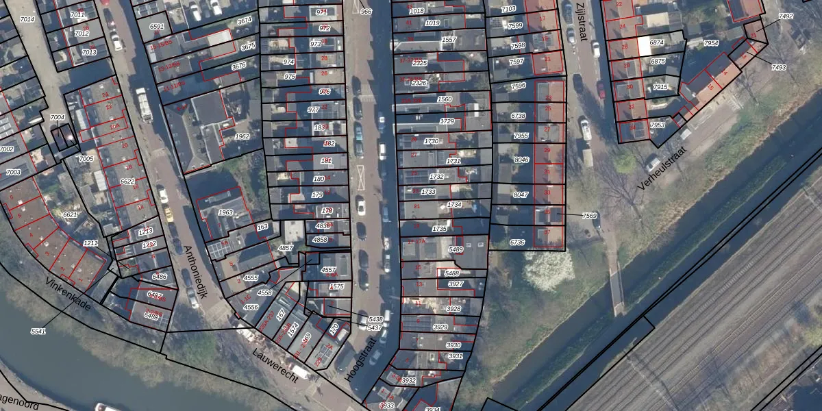 Het perceel waarop Hoogstraat 21 staat heeft een oppervlakte van 102 m². Dit is een middelgroot perceel. De perceeloppervlakte wordt geregistreerd door het Kadaster. Gedetailleerde informatie over de maten van dit perceel kunt u vinden in het rapport Kadastrale kaart met maatvoering van Hoogstraat 21.