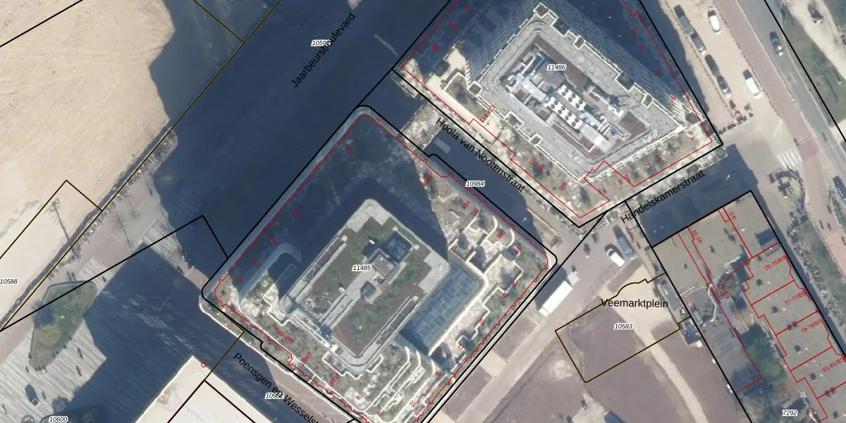 Het adres is gelegen op perceel 11485 in de sectie D en de kadastrale gemeente Catharijne. De kadastrale aanduiding is aldus CTR00-D-11485. De oppervlakte van het perceel is 3596 m². Dat is groter dan gemiddeld in Catharijne, waar de gemiddelde perceeloppervlakte op 828,25 m² ligt. Het kleinste perceel in de kadastrale gemeente is 0 m² groot. De grootste perceeloppervlakte is 35,6 ha. Er zijn 133 adressen aanwezig op het perceel. De laatste wijziging in het de Basisregistratie Kadaster (BRK) was op 06-01-2025.
