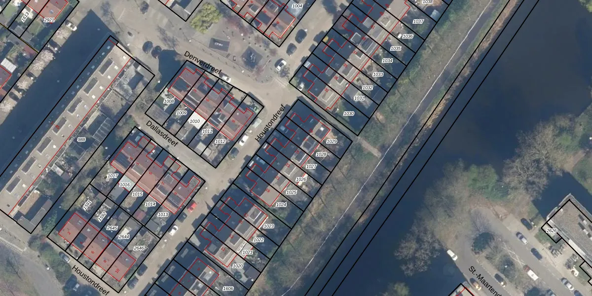 Houstondreef 25 is gelegen op kadastraal perceel UTT00F1027. Deze kadastrale aanduiding is uniek en wordt gebruikt door het Kadaster om eigendomsrechten en andere zakelijke rechten vast te leggen. Het perceel maakt onderdeel uit van de kadastrale gemeente Utrecht.