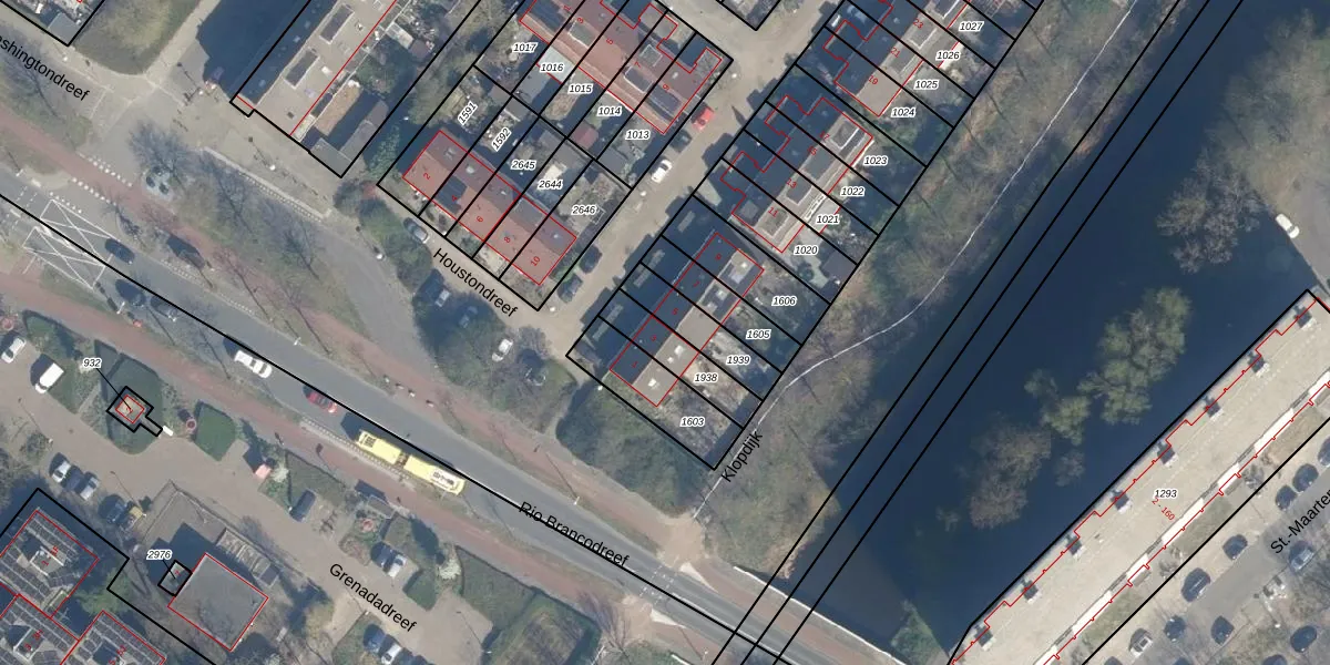 Gebruik de zoekbalk of klik op een perceel voor informatie over de adressen binnen dit perceel.