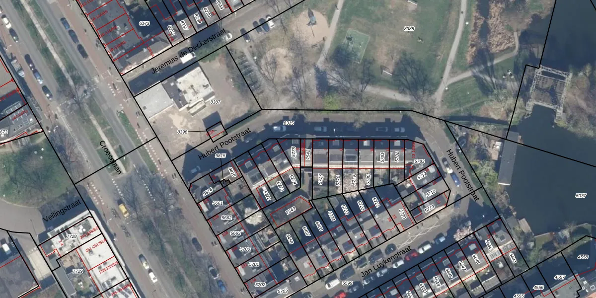 Hubert Pootstraat 5 is gelegen op kadastraal perceel CTR00D5775. Deze kadastrale aanduiding is uniek en wordt gebruikt door het Kadaster om eigendomsrechten en andere zakelijke rechten vast te leggen. Het perceel maakt onderdeel uit van de kadastrale gemeente Catharijne.