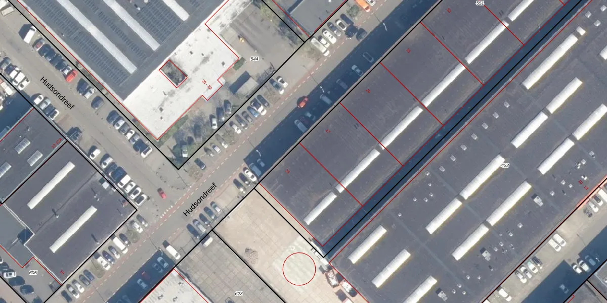 Het perceel waarop Hudsondreef 25 staat heeft een oppervlakte van 5038 m². Dit is een zeer groot perceel. De perceeloppervlakte wordt geregistreerd door het Kadaster. Gedetailleerde informatie over de maten van dit perceel kunt u vinden in het rapport Kadastrale kaart met maatvoering van Hudsondreef 25.