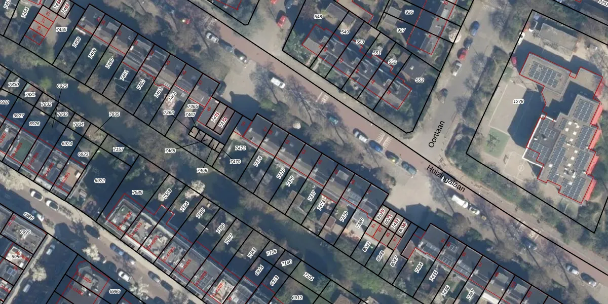 Huizingalaan 63 is gelegen op kadastraal perceel ASD40C7476. Deze kadastrale aanduiding is uniek en wordt gebruikt door het Kadaster om eigendomsrechten en andere zakelijke rechten vast te leggen. Het perceel maakt onderdeel uit van de kadastrale gemeente Abstede.